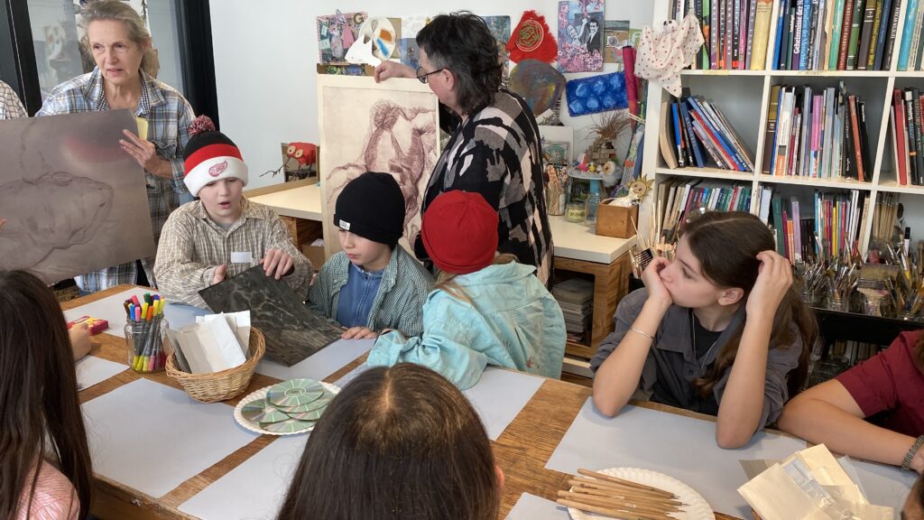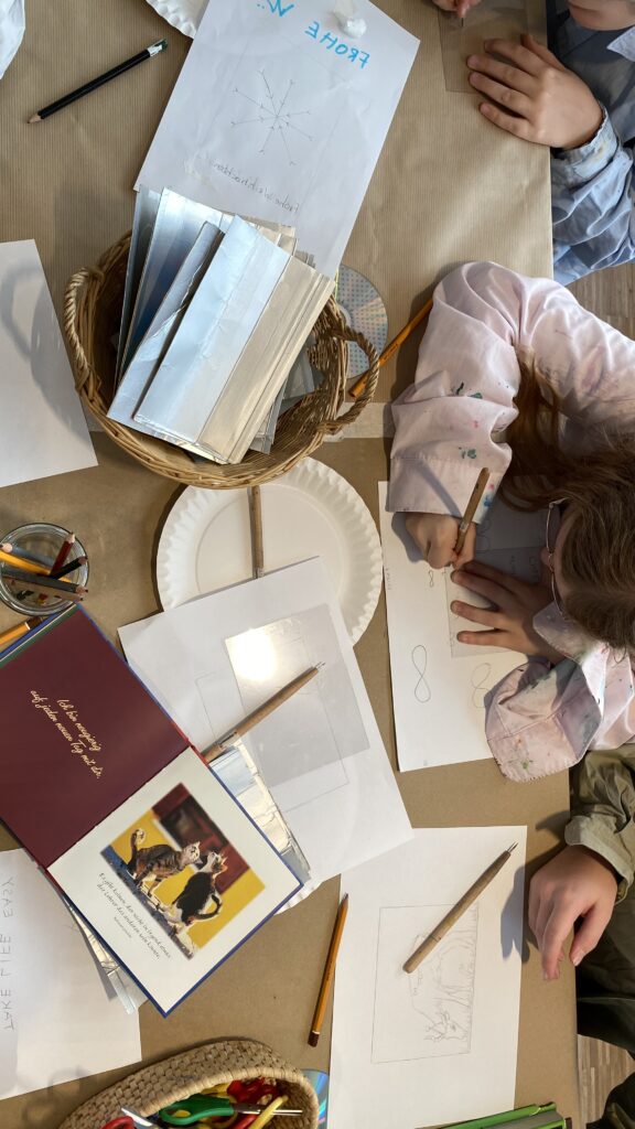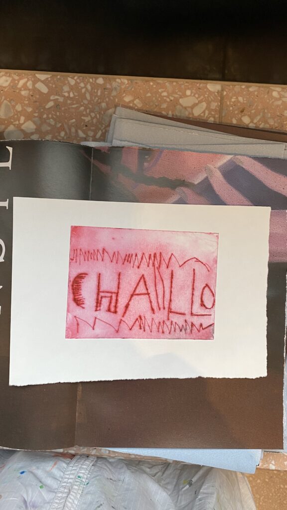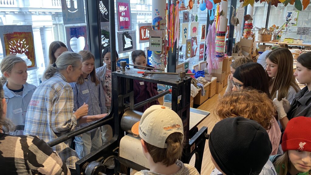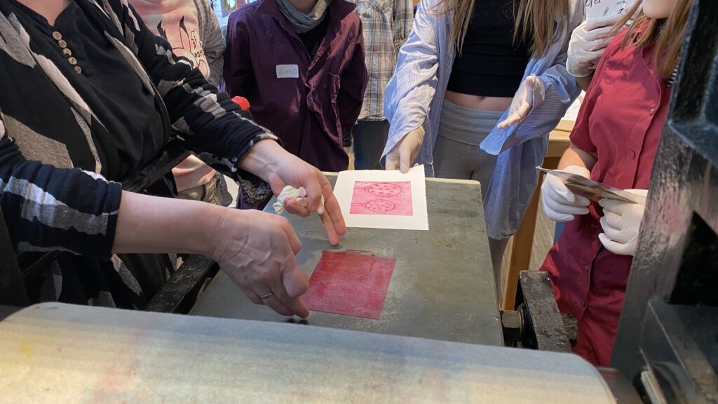 Die 2A durfte heute im Künstlerhaus gemeinsam mit der Künstlerin Natalia Weiss die Technik des Tiefdrucks kennenlernen. Dabei haben sie verschiedene Varianten der Kaltnadelradierung ausprobiert und ihre Kunstwerke auch selbst mit der riesigen Druckpresse drucken dürfen. Es sind großartige Arbeiten entstanden, manche davon passend zur Jahreszeit. Ein paar der Kunstwerke der Schüler:innen können hier in der Galerie bestaunt werden. ⬇