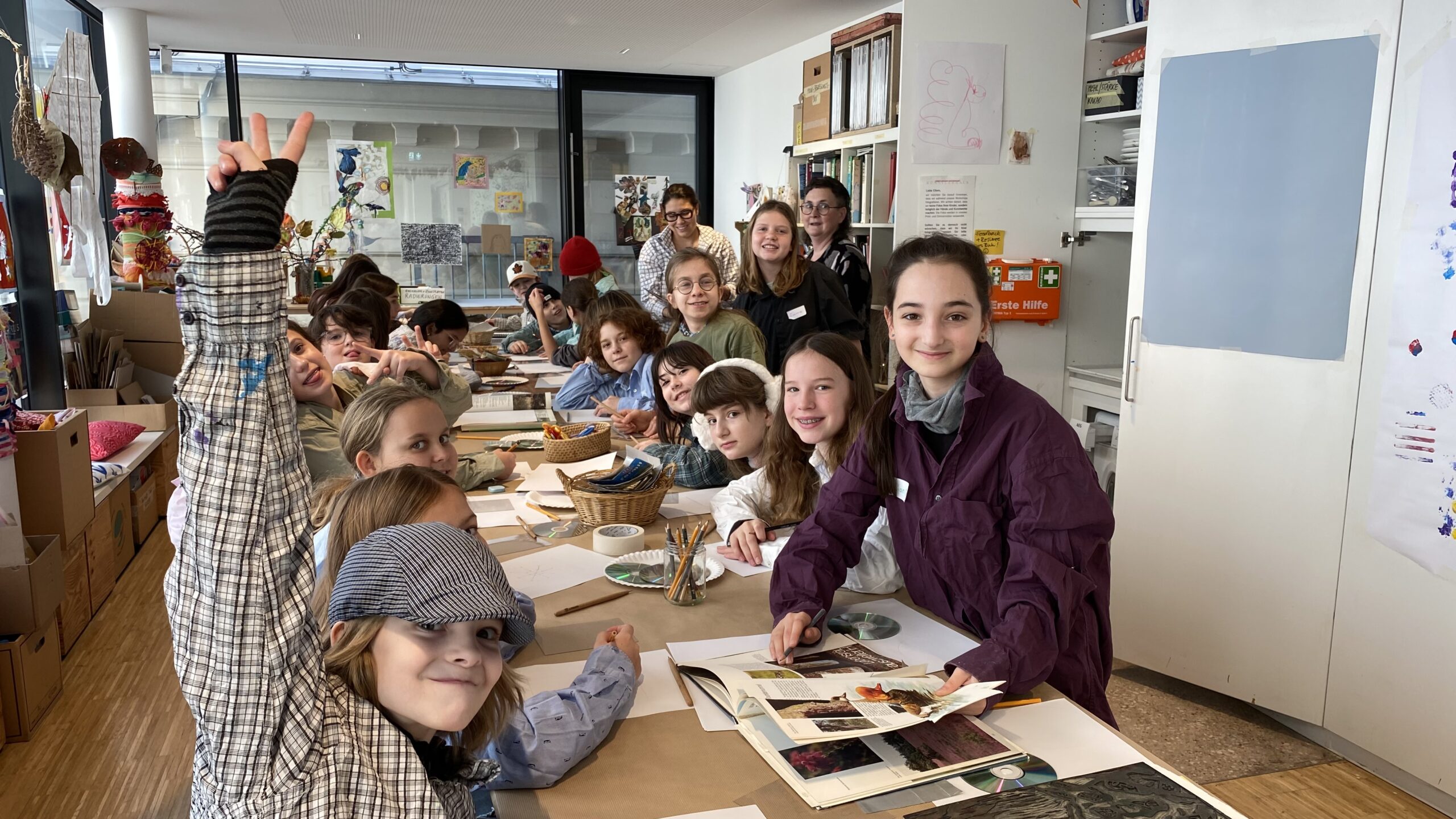 Bei einem Workshop mit Natalia Weiss wurden die Schüler:innen der 2A selbst zu Druckkünstler:innen