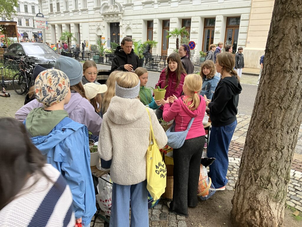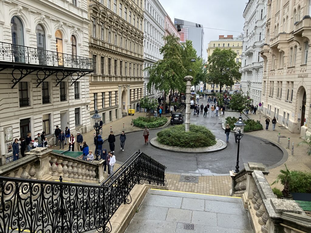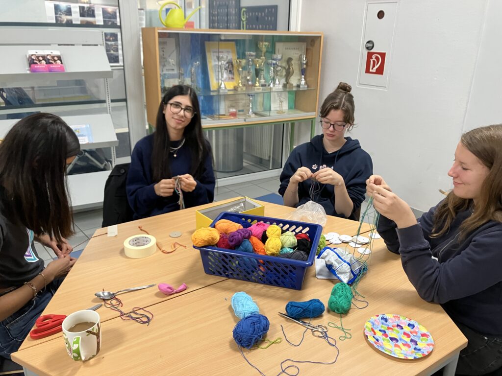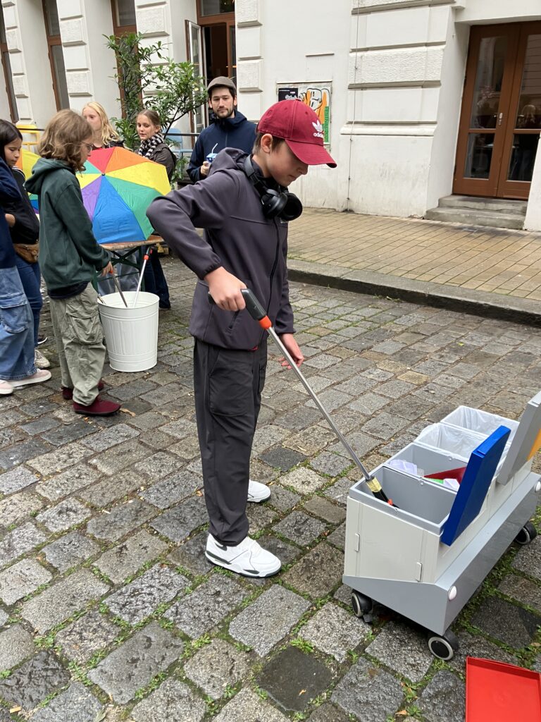 Am Freitag, den 26.9.25, nutzen viele Schüler:innen, aber auch einzelne Passant:innen, die Vorzüge einer autofreien Rahlgasse. Wo normalerweise 12 Autos parken, wurde Fußball und Tischtennis gespielt, getanzt und gesprungen, Seifenblasen verschickt, Müll richtig getrennt und nette Gesten durchgeführt (z.B. Geh zu einer Person mit Brille und sag: “Deine Brille steht dir super!”). Wegen des schlechten Wetters musste die Aufführung des Chors und der Auftritt des Rappers (Ben Jo) in den Musiksaal verlegt werden. In der Aula regte eine Timeline von Artist for Future zum Nachdenken an: “Wie schauen wissenschaftlich fundierte Zukunftsszenarien für unsere Erde aus?” Bei der Knüpfstation entstanden viele neue Freundschaftsbänder und beim Buffet des Maturaballkomitees konnte man gegen eine Spende eine köstliche Stärkung bekommen.