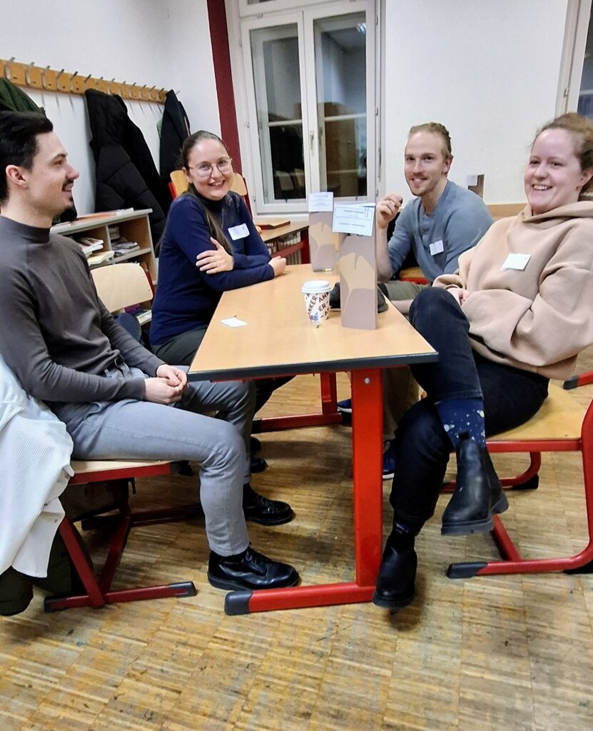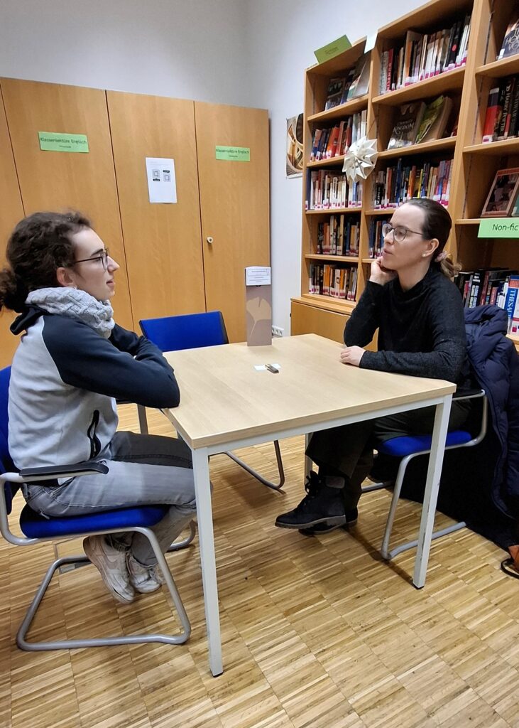 Jede/r eheRahlige hatte in der Bibliothek und zwei angrenzenden Klassen einen Beratungstisch. Auf einem Tischsteher waren Name, Jahrgang und die wesentlichsten Lebensstationen zur Orientierung der Jugendlichen angeführt. Die Veranstaltung war sichtlich ein Erfolg: um 21:30 Uhr statt wie geplant um 20:00 Uhr mussten die letzten Teilnehmer:innen zum Heimgehen gebeten werden.