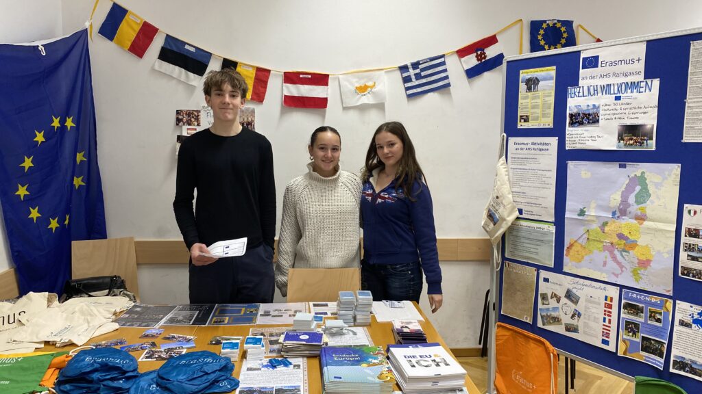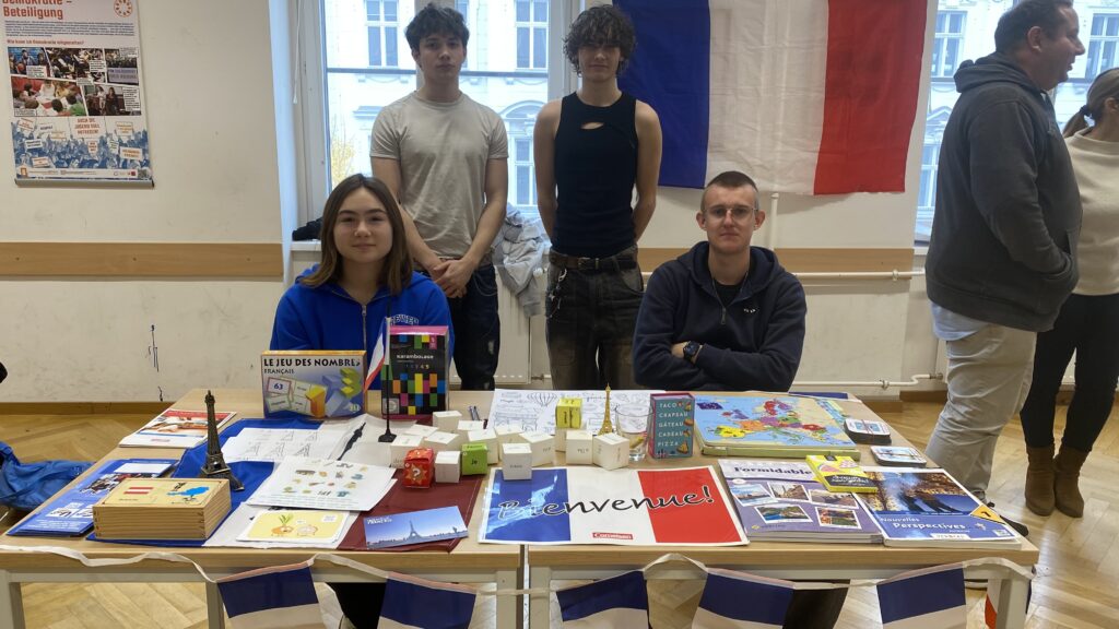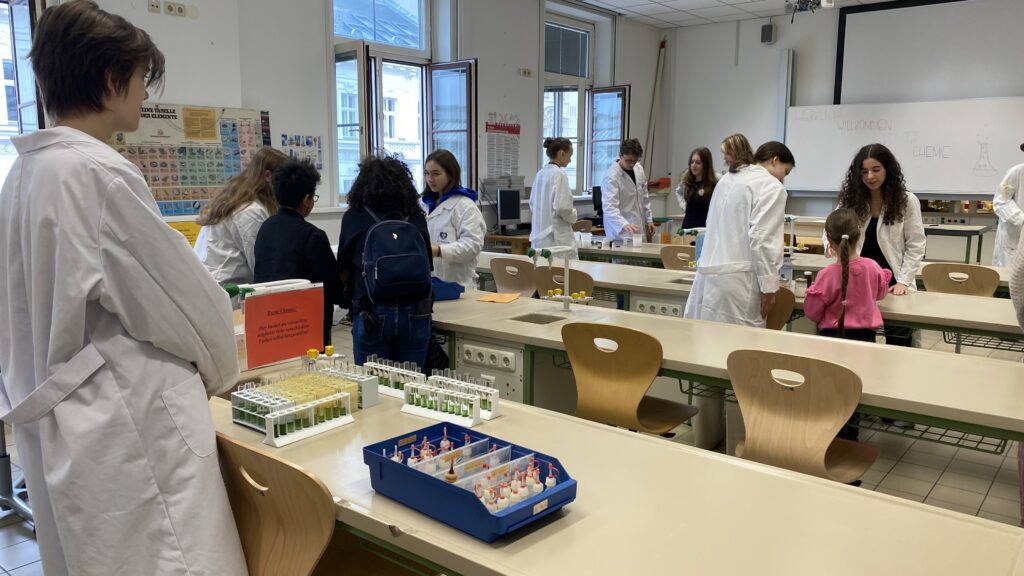 Offene Klassentüren ermöglichten Einblicke in den Unterricht, während unsere Peer-Guides persönliche Führungen anboten und die Schule aus ihrer Perspektive zeigten. Die Mitmachstationen – angefangen bei der spektakulären Chemieshow und verschiedenen Versuchen bis zum Kekse backen in der Nachmittagsbetreuung und der Stempelherstellung in Technik & Design – zeigten unsere lebendige Schulkultur. Neben der Schulpräsentation der Direktorin gab es Infostände und Aktionen zu den Schulschwerpunkten, Erasmus+, Italienisch, Französisch, Latein und Sportangeboten. Unser Ballkomitee sorgte mit einem tollen Buffet für Stärkung.