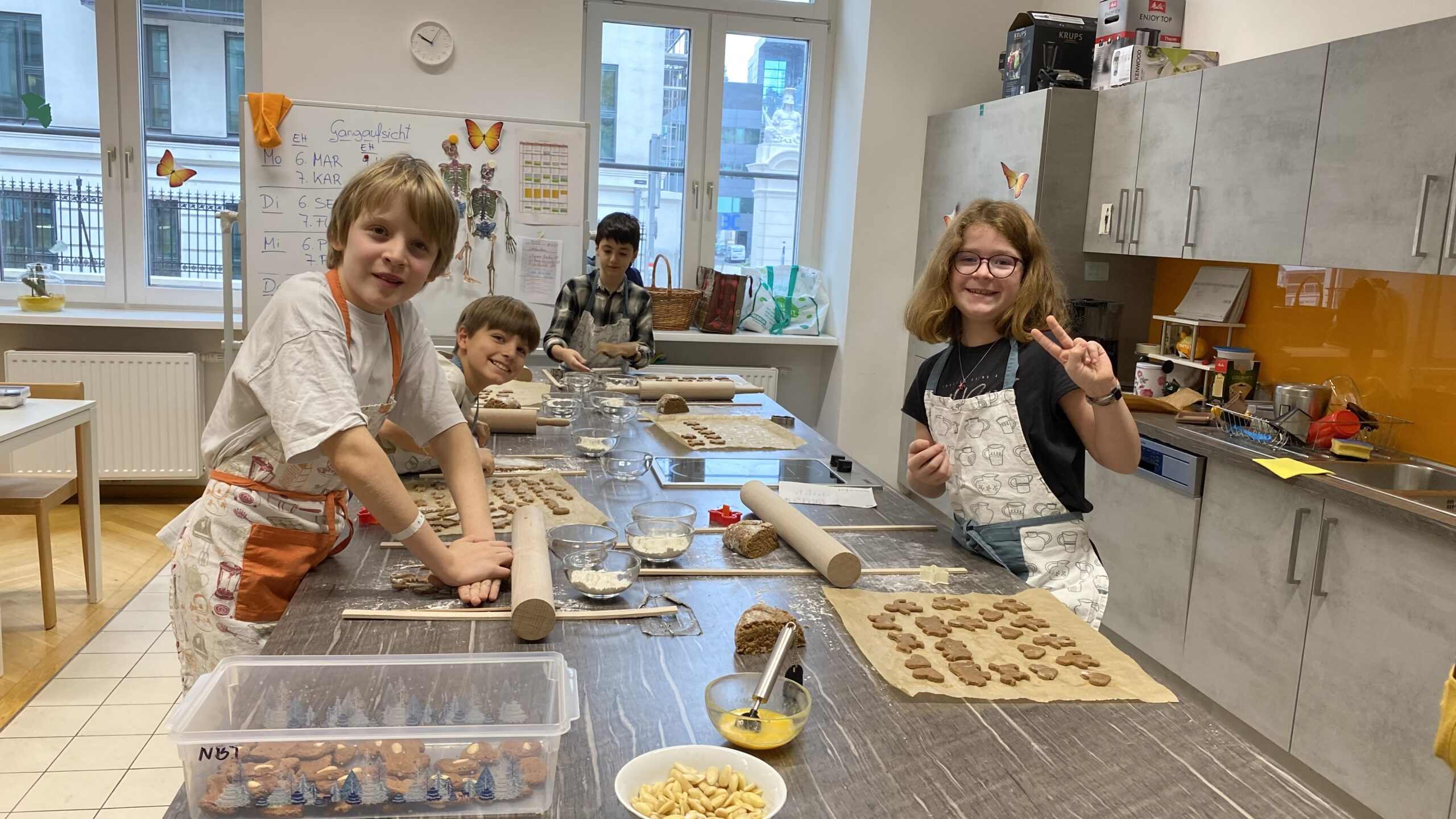 Offene Klassentüren ermöglichten Einblicke in den Unterricht, während unsere Peer-Guides persönliche Führungen anboten und die Schule aus ihrer Perspektive zeigten. Die Mitmachstationen – angefangen bei der spektakulären Chemieshow und verschiedenen Versuchen bis zum Kekse backen in der Nachmittagsbetreuung und der Stempelherstellung in Technik & Design – zeigten unsere lebendige Schulkultur. Neben der Schulpräsentation der Direktorin gab es Infostände und Aktionen zu den Schulschwerpunkten, Erasmus+, Italienisch, Französisch, Latein und Sportangeboten. Unser Ballkomitee sorgte mit einem tollen Buffet für Stärkung.