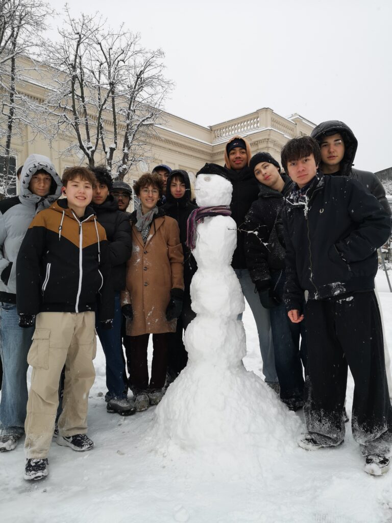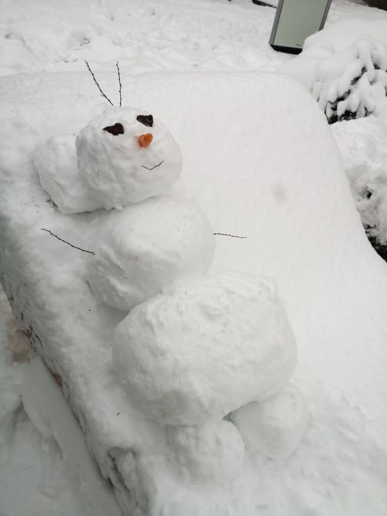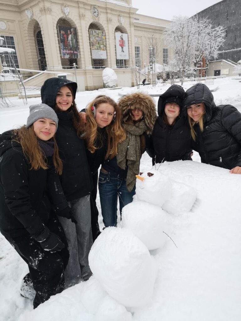 An diesem Freitag gab es Schnee in rauen Mengen, und er war perfekt zum Bauen – egal, ob für eine Schneeballschlacht oder für Figuren aus Schnee. Mit nackten Händen lässt er sich aber viel besser formen als mit Handschuhen. Statt Theorie im Biologiesaal erlebte die 7A daher die erste Stunde hautnah mit Strategien zur Aufrechterhaltung der Körpertemperatur. Und am Ende entstanden zwei tolle Schneemänner.
