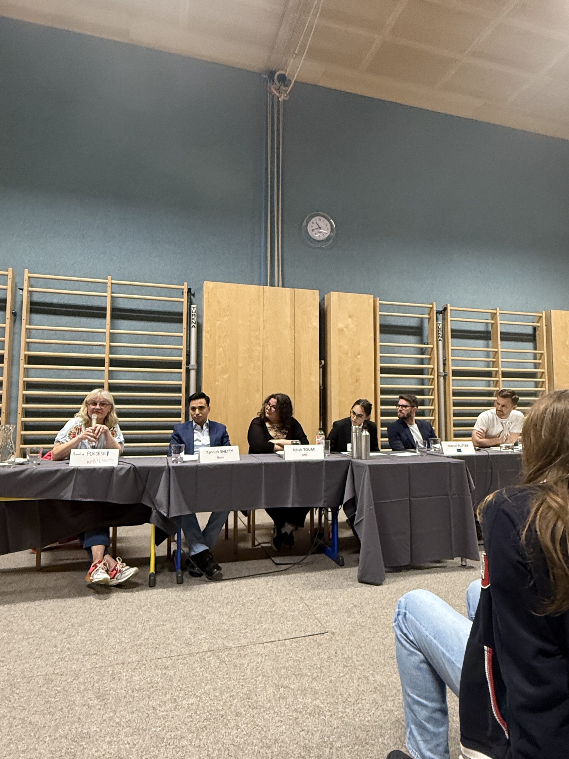 Im Rahmen der Wien-Wahl 2025 fand an der AHS Rahlgasse eine spannende Podiumsdiskussion mit Vertreterinnen der SPÖ, ÖVP, Grünen, NEOS sowie KPÖ/Links statt. Die Gäste – darunter Peter Kraus (Grüne), Yannick Shetty (NEOS) und Rihab Toumi (SPÖ) – diskutierten mit Schülerinnen über zentrale Themen wie den Lobautunnel, Wohnen, Integration und Bildung. Die Veranstaltung bot wertvolle Einblicke in die Positionen der Parteien und förderte den politischen Diskurs an unserer Schule. Die FPÖ ist unserer Einladung nicht gefolgt.