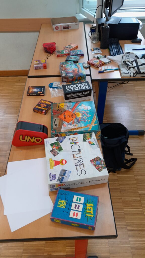 Im Rahmen der Projekttage konnten Schüler*innen ab der 3. Klasse eine große Auswahl an Brett- und Kartenspielen testen und mit Gleichgesinnten ausprobieren. Rund 30 Spiele standen zur Auswahl, es ging darum auch neue und komplexere Spiele auszuprobieren. An den 3 Tagen waren über 100 Schüler*innen dabei, vielleicht auch die eine oder andere Idee für den nächsten Spieleabend mit Familie oder Freund*innen.