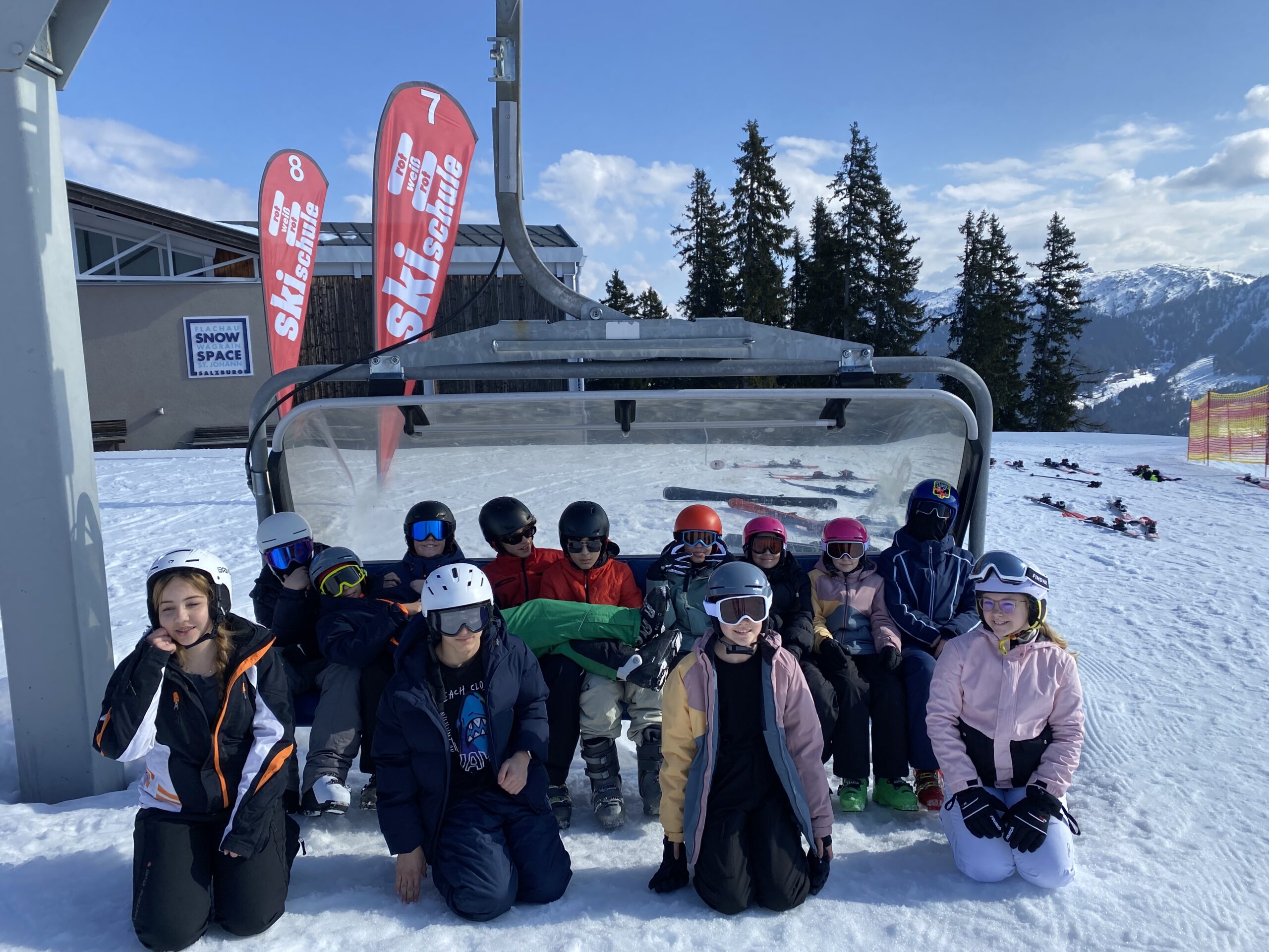 Die Wintersportwoche der Klassen 3c und 3d in Wagrain Anfang März war ein voller Erfolg und wird allen Beteiligten noch lange in Erinnerung bleiben. Gleich zu Beginn wurden wir mit idealen Bedingungen empfangen: Frischer Neuschnee sorgte für perfekte Pistenverhältnisse, während strahlender Sonnenschein die Tage zusätzlich verschönerte.
